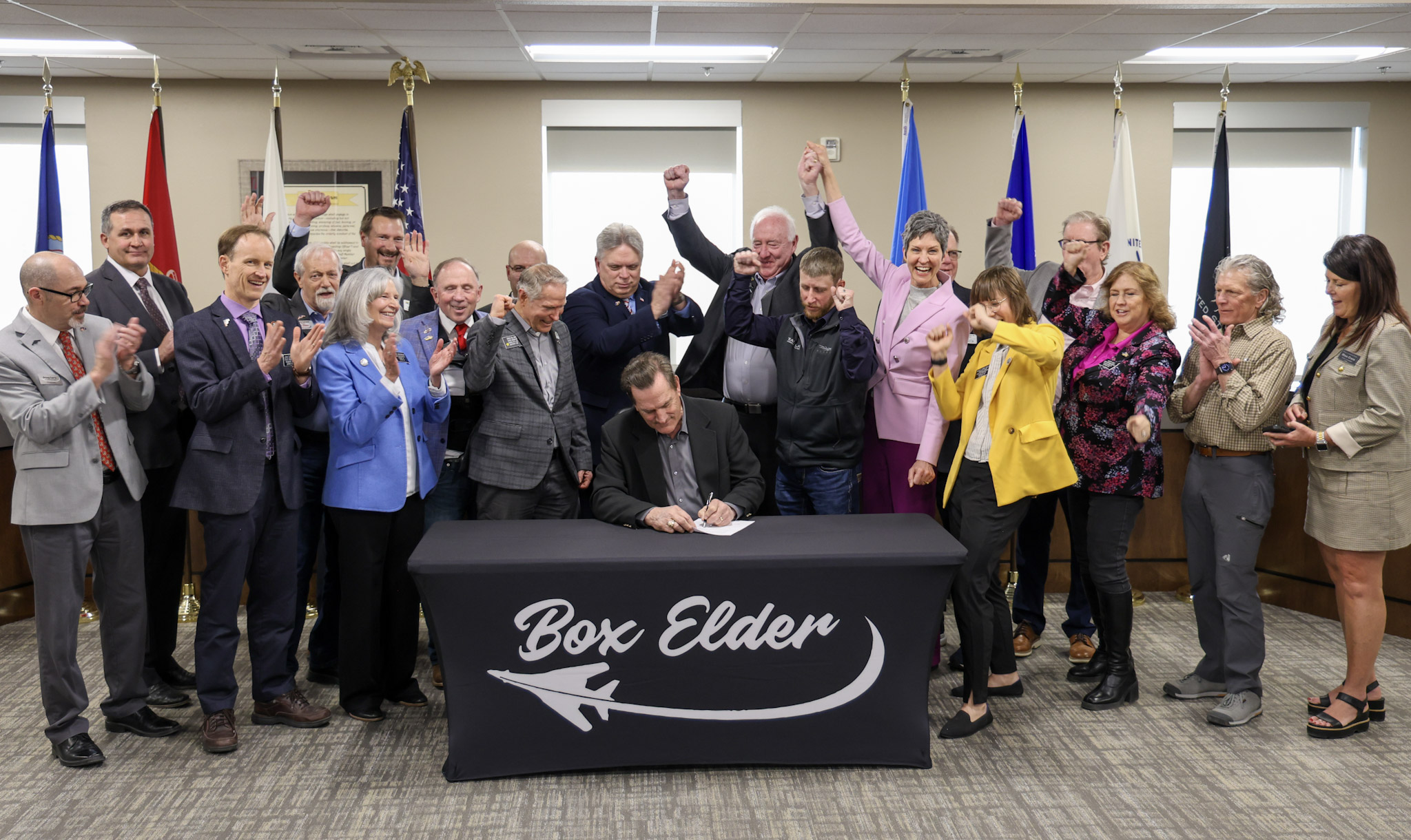 Governor Larry Rhoden joined local legislators and City staff at Box Elder City Hall to sign SB 130, appropriating $8 million for roadway and infrastructure improvements to support, mitigate, and address impacts from construction activity occurring around Ellsworth Air Force Base.