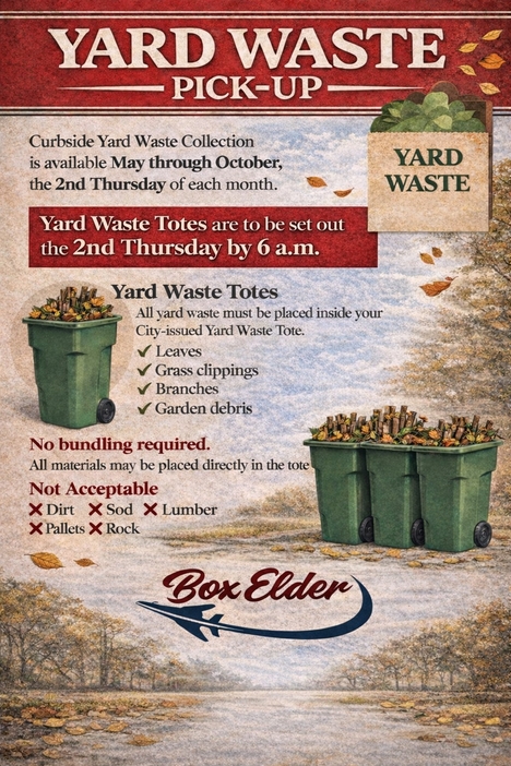 City of Box Elder customers have their refuse picked up on Monday, Tuesday, Wednesday, and Thursday of each week.