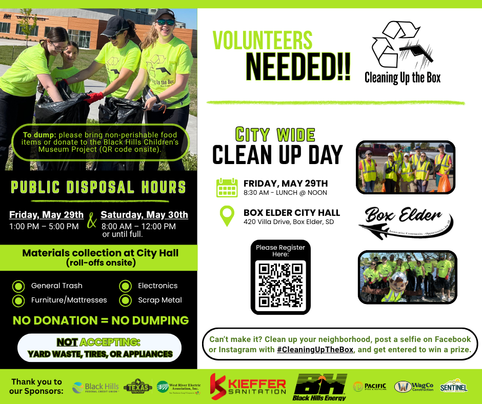 We’ll kick things off at Box Elder City Hall Community Center - 420 Villa Dr (doors open at 8:00 a.m.). After a quick safety briefing at 8:30 a.m., teams will head out to tackle their cleanup zones. Then we’ll come back around noon to celebrate with lunch!